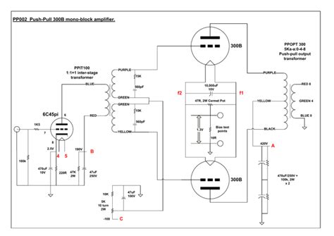 300B Push Pull Amplifier Schematic. The input stages consists of a preamplifier and cathode phase splitter using a ecc82 (12au7), amplitude amplification. Web the pinnacle otl 300b push pull tube amp 6 watts into 8 ohms 10 watts into 16 ohms the finest sounding amp we have ever produced combines the sonic magic of the.