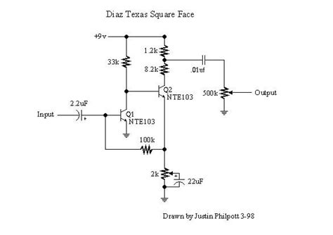 Diaz Square Face Schematic. Was going to build one off this schematic. Web i am using nte123ap silicon transistors (the square face used these for the silicon option), and germanium 2n2222’s.